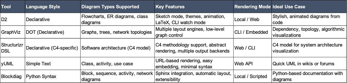 The Diagram-as-Code space has grown fast. While PlantUML is a heavyweight, several other tools bring unique strengths.