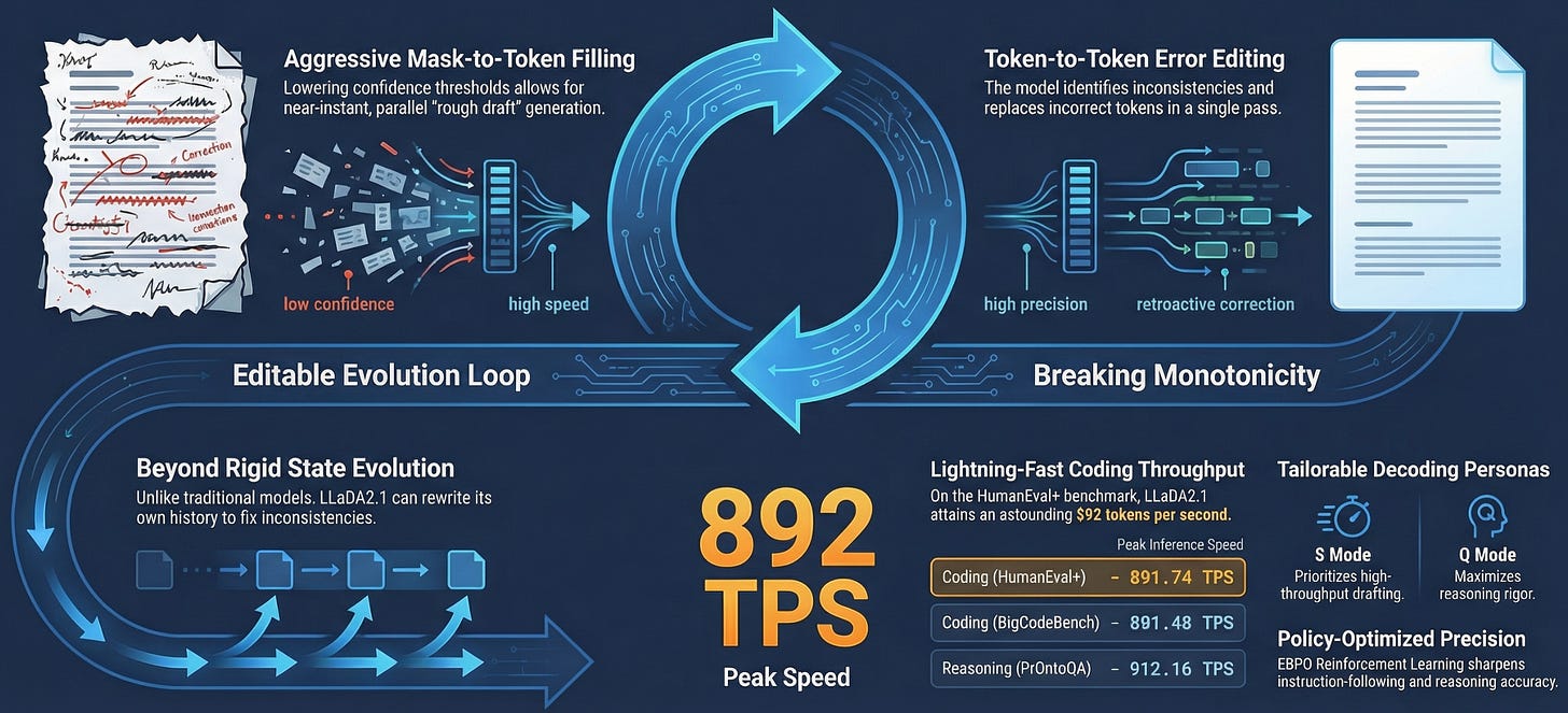 LLaDA2.1 Introduces a Draft-and-Edit Paradigm That Makes Diffusion Language Models Blazingly Fast